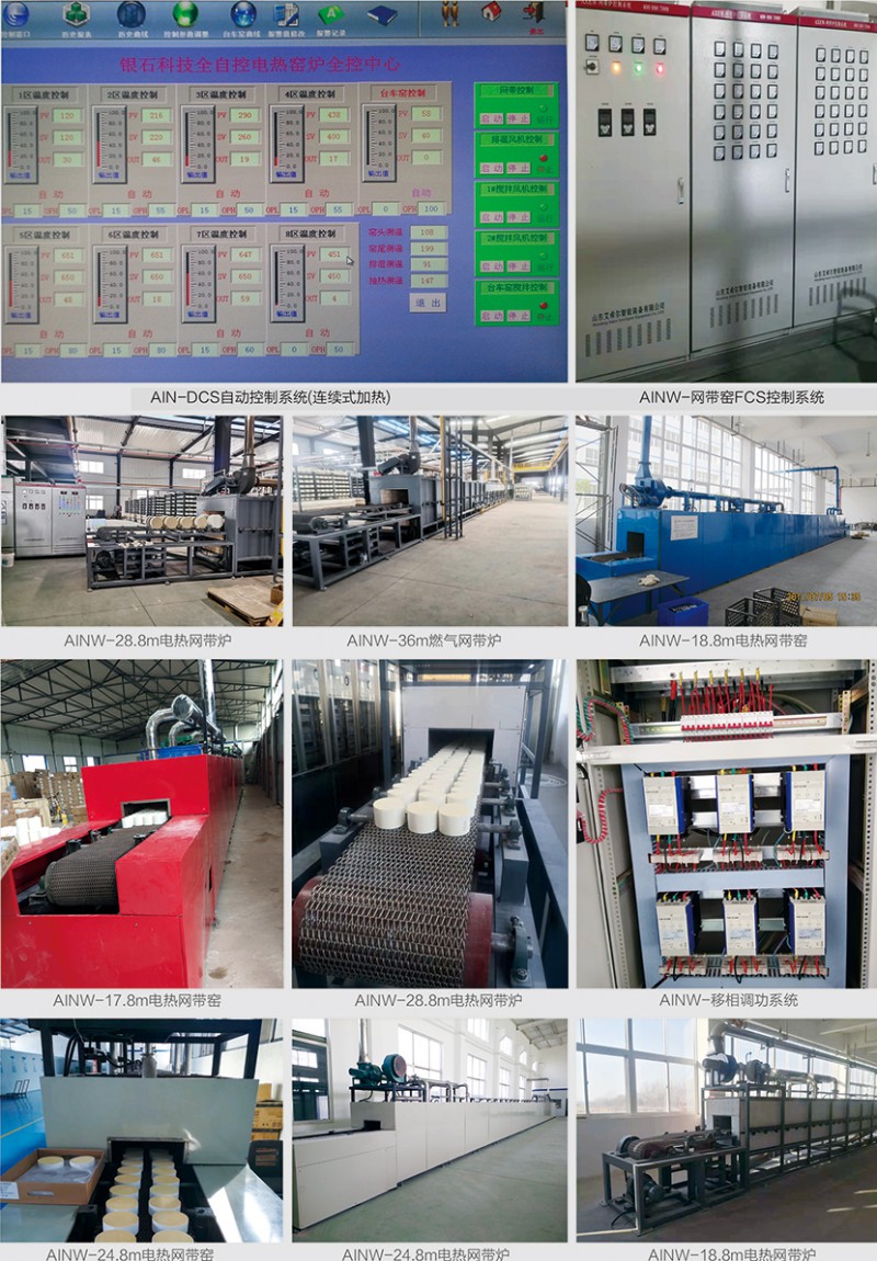 網帶窯爐屬于連續性窯爐,傳動方式為金屬網帶,金屬網帶由托輥或托板承載,主要用于陶瓷玻璃烤花、玻璃熱彎成型、玻璃退火、催化劑再生、粉體材料的干燥、焙燒。按加熱方式可分為燃氣網帶窯和電熱網帶窯兩類。網帶根據溫度選用不同材質的不銹鋼材料,受金屬材質所限,一般網帶窯使用溫度≤1050℃。主要適用于特種陶瓷、結構陶瓷、電子陶瓷、功能陶瓷、磁性材料、電子粉體、電子器件、蜂窩陶瓷等領域,具有質量穩定可靠,爐溫均勻,得到客戶認可,特別是節約能源做了大量工作。