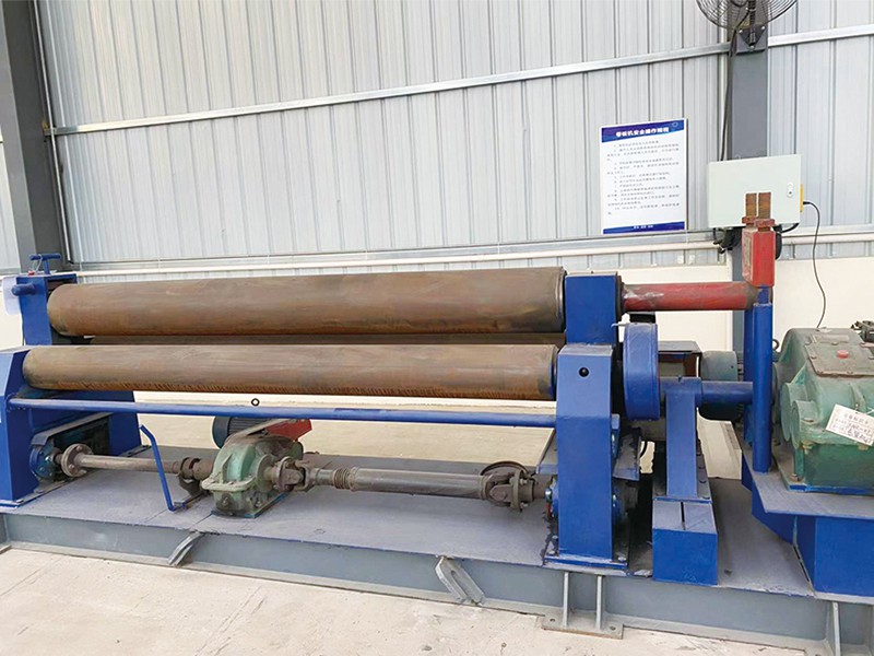 簡析卷板機(jī)的工作原理及應(yīng)用范圍卷板機(jī)是對(duì)板料進(jìn)行連續(xù)點(diǎn)彎曲的塑形機(jī)床,具有卷制O 同的形狀卷板機(jī)規(guī)格平整的塑性金屬板通過卷板機(jī)的三根工作輥(二根下輥、一根上輥) 之間,借助上輥的下壓及下輥的旋轉(zhuǎn)運(yùn)動(dòng),使金屬板經(jīng)過多道次連續(xù)彎曲(內(nèi)層 壓縮變形,中層不變,外層拉伸變形),產(chǎn)生塑性變形,卷制成所需要 的圓筒、錐筒或它們的一部分。 卷板機(jī)的工作原理是卷板機(jī)上輥在兩下輥中央對(duì)稱位置通過液壓缸內(nèi)的液壓油作用于活塞作垂直升降運(yùn)動(dòng),通過主減速機(jī)的末級(jí)齒輪帶動(dòng)兩下輥齒輪嚙合作旋轉(zhuǎn) 運(yùn)動(dòng),為卷制板材提供扭矩。借助上輥的下壓及下輥的旋轉(zhuǎn)運(yùn)動(dòng),使金屬板經(jīng)過 多道次連續(xù)彎曲,產(chǎn)生塑性變形,卷制成所需要的園筒、錐筒或它們的一部分。